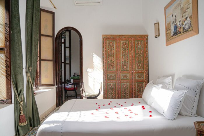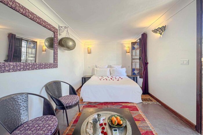Riad Alloune blends traditional Moroccan craftsmanship with refined details, creating a warm and elegant atmosphere where every space tells a story of authenticity and comfort.