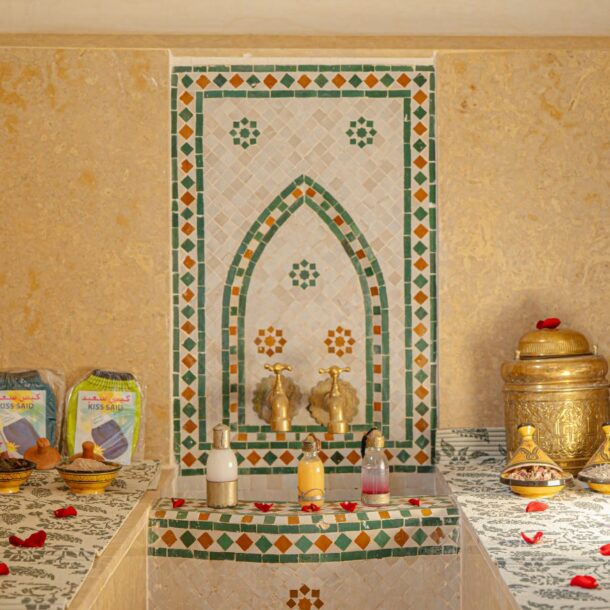 Discover a moment of pure relaxation in our traditional hammam, inspired by authentic Moroccan wellness rituals. Designed to soothe both body and mind, this intimate space offers a timeless experience where warmth, steam, and serenity come together. After a day exploring the Medina, the hammam invites you to unwind, release tension, and reconnect with yourself in a calm and authentic setting. Learn More